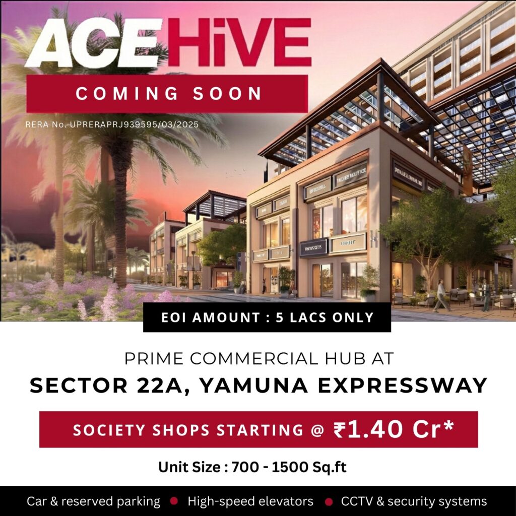 ACE Hive, located in the rapidly developing Sector 22A along the Yamuna Expressway in Greater Noida, is a cutting-edge commercial project by ACE Group. Strategically positioned near key developments like the upcoming Noida International Airport and the proposed Film City, ACE Hive is designed to be a vibrant hub of retail, dining, and entertainment in the NCR region.